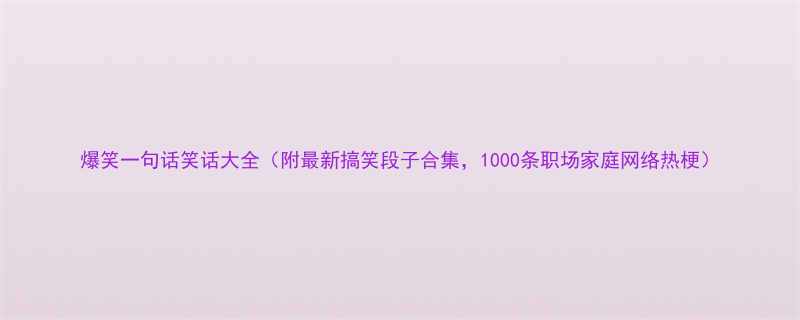 爆笑一句话笑话大全(附最新搞笑段子合集,1000条职场/家庭/网络热梗)