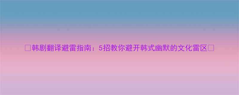 ✨韩剧翻译避雷指南:5招教你避开韩式幽默的"文化雷区"🌟