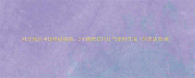 "社交场合冷场终结指南:3个幽默技巧让气氛秒升温(附实战案例)"