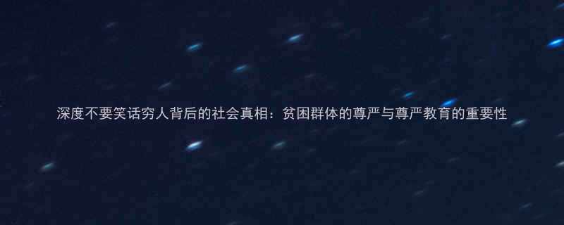 【深度】"不要笑话穷人"背后的社会真相:贫困群体的尊严与尊严教育的重要性