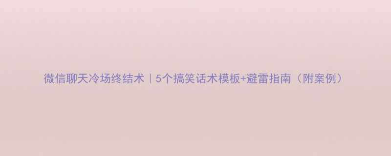 微信聊天冷场终结术|5个搞笑话术模板+避雷指南(附案例)