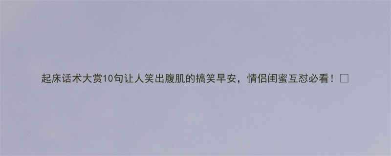当代年轻人起床困难症集体发作,但总有人用脑洞大开的起床梗让赖床党秒清醒!今天分享全网最全搞笑起床话术,分为情侣互怼、闺蜜互坑、室友互怼三大场景,附赠表情包使用技巧,让你家那位从此告别"再睡5分钟"魔咒!