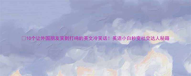 🌟10个让外国朋友笑到打鸣的英文冷笑话!英语小白秒变社交达人秘籍