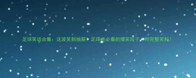 【足球笑话合集:这波笑到抽筋!足球迷必看的爆笑段子(附完整笑料)】