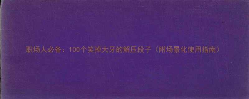 职场人必备:100个笑掉大牙的解压段子(附场景化使用指南)