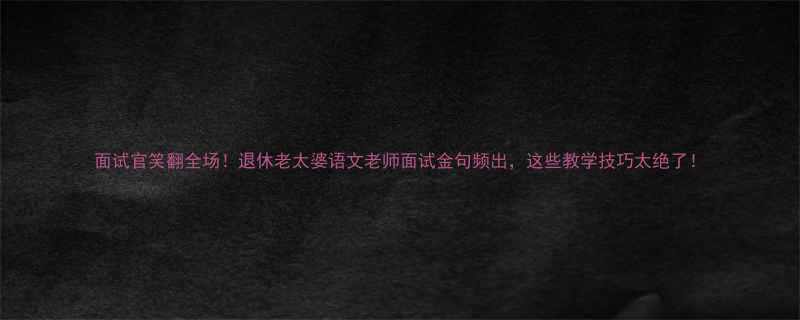 面试官笑翻全场!退休老太婆语文老师面试金句频出,这些教学技巧太绝了!