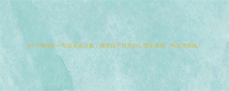 《100个神转折一句话笑话合集|爆笑段子背后的心理学原理(附互动挑战)》