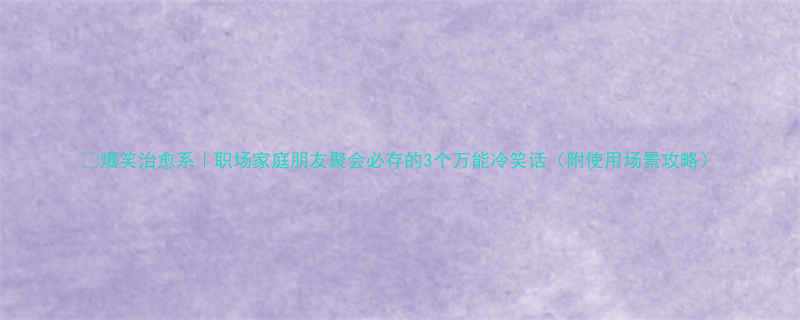 🌟爆笑治愈系|职场/家庭/朋友聚会必存的3个万能冷笑话(附使用场景攻略)