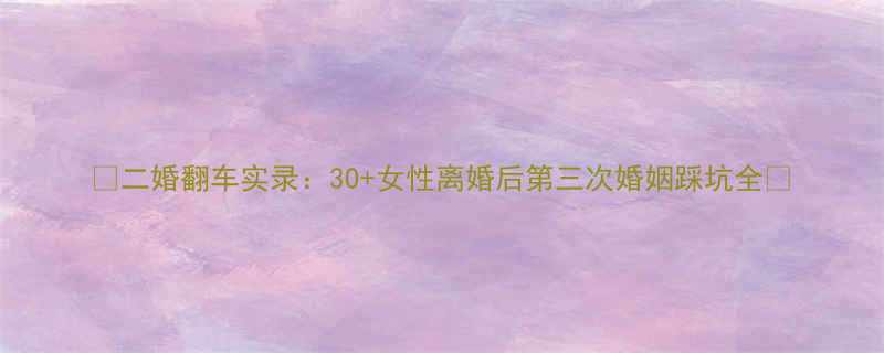 🔥《二婚翻车实录:30+女性离婚后第三次婚姻踩坑全》🔥