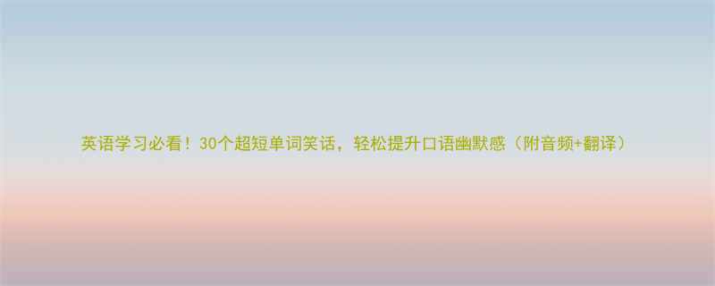 英语学习必看!30个超短单词笑话,轻松提升口语幽默感(附音频+翻译)