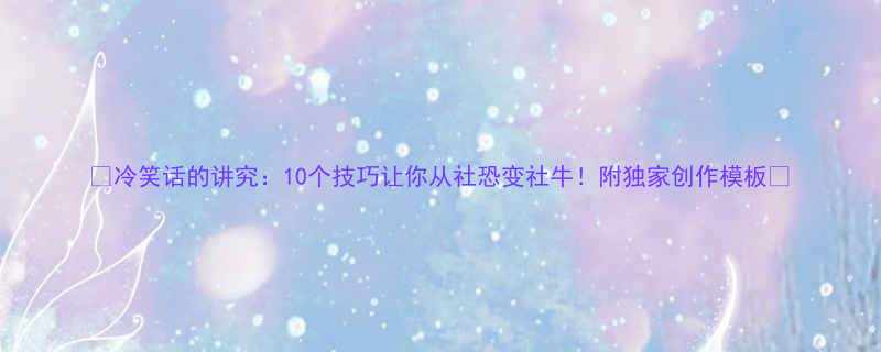🔥《冷笑话的讲究:10个技巧让你从社恐变社牛!附独家创作模板》💡