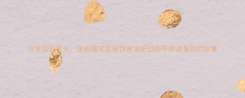 汉字谐音字大:这些搞笑谐音你肯定听过却不知道背后的故事