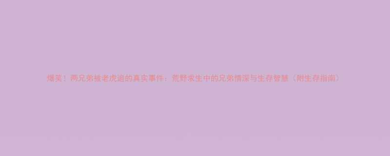 爆笑!两兄弟被老虎追的真实事件:荒野求生中的兄弟情深与生存智慧(附生存指南)