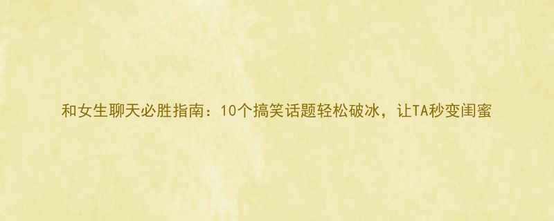 和女生聊天必胜指南:10个搞笑话题轻松破冰,让TA秒变闺蜜