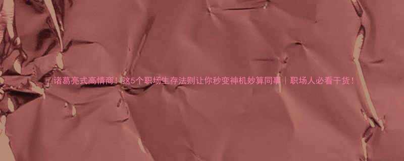 🔥诸葛亮式高情商!这5个职场生存法则让你秒变"神机妙算"同事|职场人必看干货!