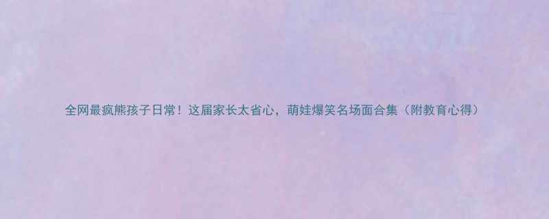 全网最疯熊孩子日常!这届家长太省心,萌娃爆笑名场面合集(附教育心得)