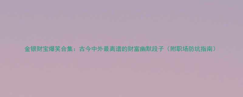 《金银财宝爆笑合集:古今中外最离谱的财富幽默段子(附职场防坑指南)》