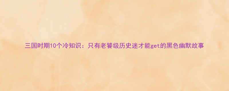 《三国时期10个冷知识:只有老饕级历史迷才能get的黑色幽默故事》