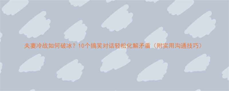 夫妻冷战如何破冰?10个搞笑对话轻松化解矛盾(附实用沟通技巧)