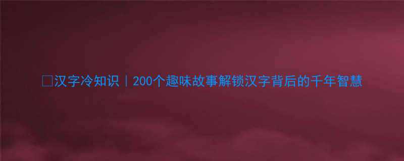 📚汉字冷知识|200个趣味故事解锁汉字背后的千年智慧
