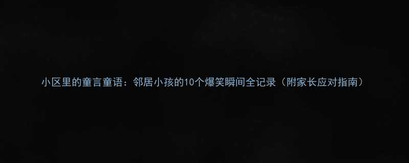 《小区里的童言童语:邻居小孩的10个爆笑瞬间全记录(附家长应对指南)》