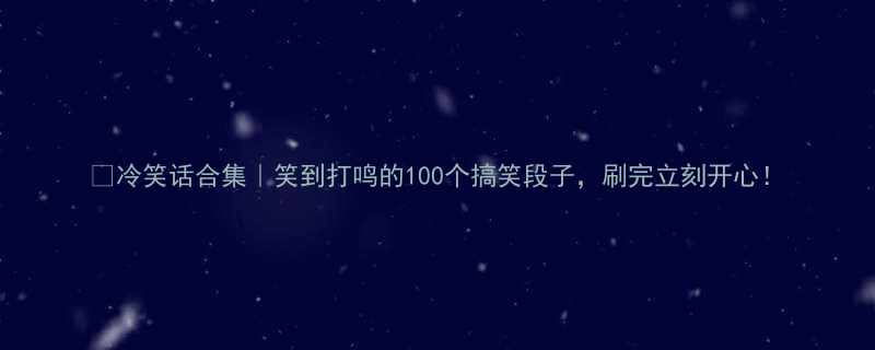 "刷到就是赚到!"全网最全冷笑话合集来啦!从经典职场段子到生活搞笑瞬间,从网络热梗改编到互动问答彩蛋,保证让你笑出八块腹肌!文末还有隐藏福利,看完不转不是中国人🙏