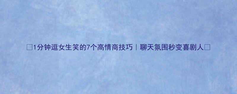 ✨【1分钟逗女生笑的7个高情商技巧|聊天氛围秒变喜剧人】💃