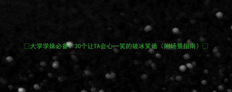 ✨大学学妹必备!30个让TA会心一笑的破冰笑话(附场景指南)💄
