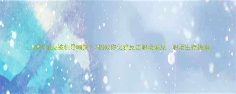 🌾农村出身被领导嘲笑?3招教你优雅反击职场偏见|职场生存指南