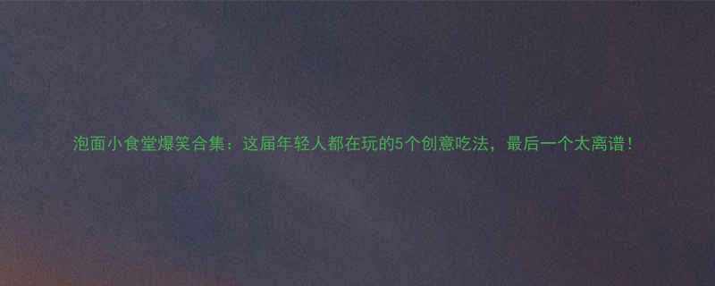 【泡面小食堂爆笑合集:这届年轻人都在玩的5个创意吃法,最后一个太离谱!】
