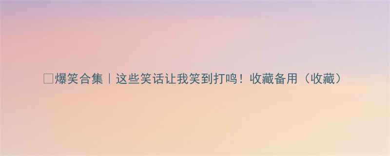 🔥爆笑合集|这些笑话让我笑到打鸣!收藏备用(收藏)