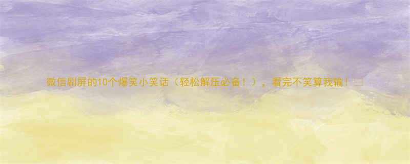 微信刷屏的10个爆笑小笑话(轻松解压必备!),看完不笑算我输!💥