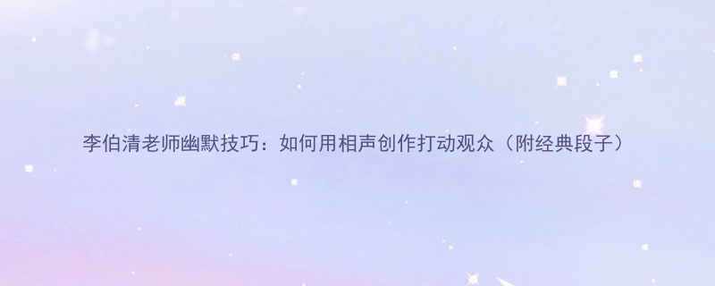 《李伯清老师幽默技巧:如何用相声创作打动观众(附经典段子)》