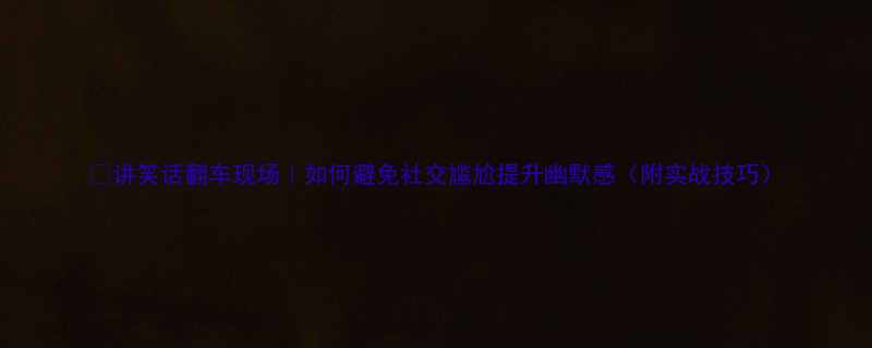 📌讲笑话翻车现场|如何避免社交尴尬提升幽默感(附实战技巧)
