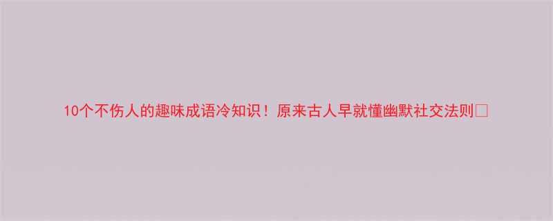 《10个"不伤人"的趣味成语冷知识!原来古人早就懂幽默社交法则✨》