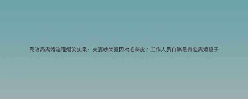 《民政局离婚流程爆笑实录:夫妻吵架竟因鸡毛蒜皮?工作人员自曝最奇葩离婚段子》