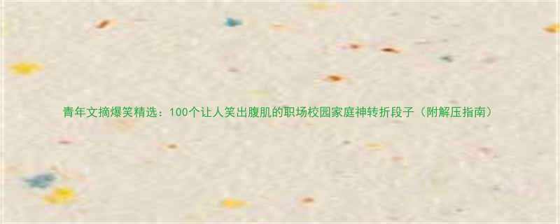 青年文摘爆笑精选:100个让人笑出腹肌的职场/校园/家庭神转折段子(附解压指南)