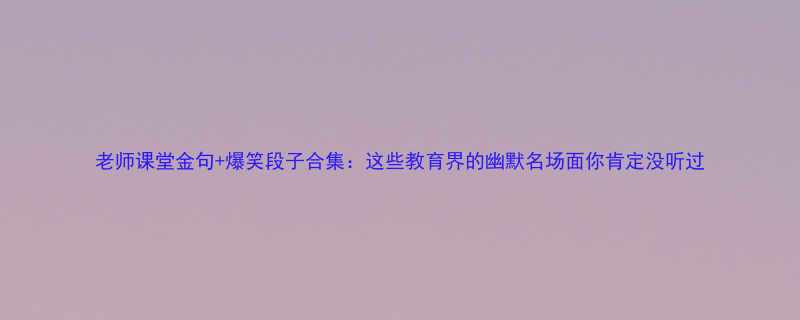 《老师课堂金句+爆笑段子合集:这些教育界的幽默名场面你肯定没听过》