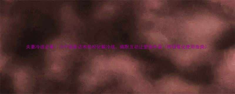 夫妻冷战必看!10个搞笑话术轻松化解冷战,幽默互动让爱意升温(附场景化使用指南)