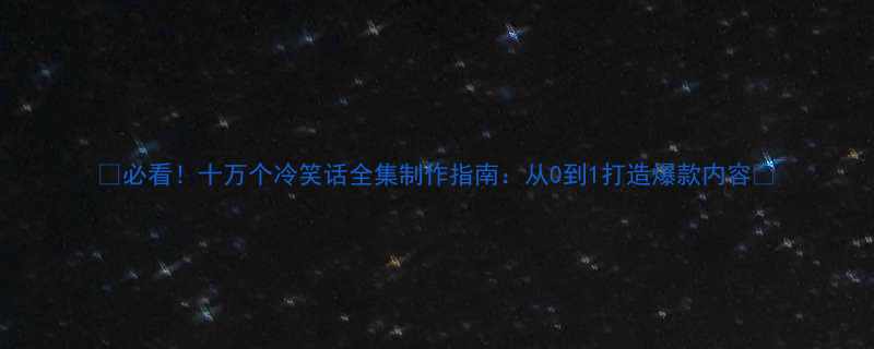 🌟《必看!十万个冷笑话全集制作指南:从0到1打造爆款内容》🎉