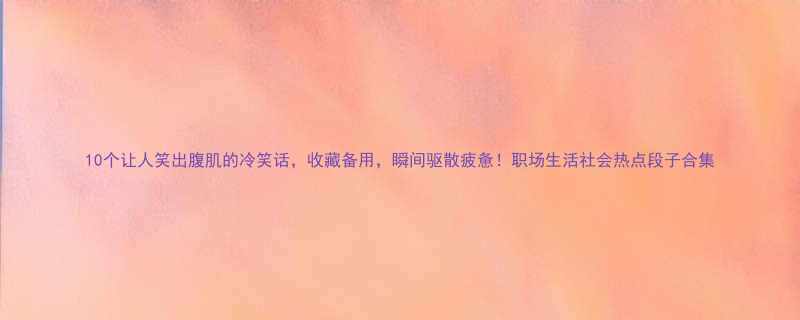 《10个让人笑出腹肌的冷笑话,收藏备用,瞬间驱散疲惫!职场/生活/社会热点段子合集》