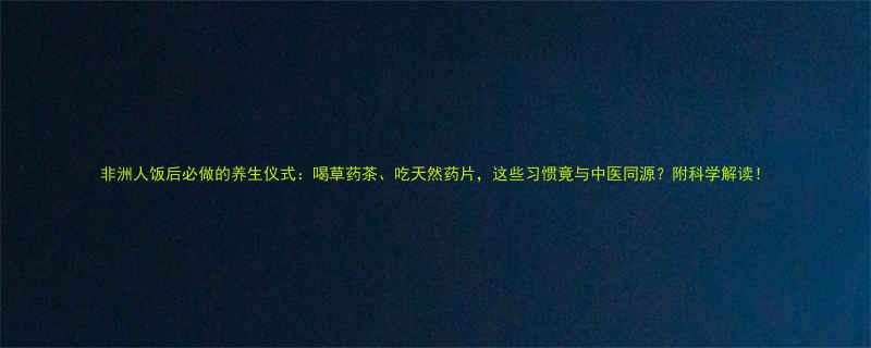 非洲人饭后必做的养生仪式:喝草药茶、吃天然药片,这些习惯竟与中医同源?附科学解读!