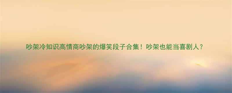 【吵架冷知识】高情商吵架的爆笑段子合集!吵架也能当喜剧人?