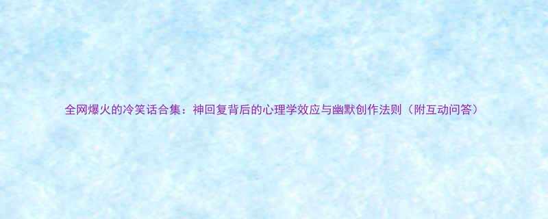 《全网爆火的冷笑话合集:神回复背后的心理学效应与幽默创作法则(附互动问答)》