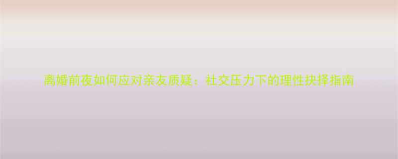 《离婚前夜如何应对亲友质疑:社交压力下的理性抉择指南》