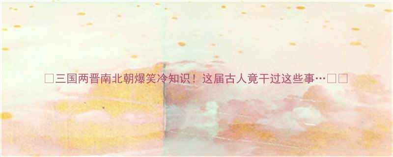 📜【三国两晋南北朝爆笑冷知识!这届古人竟干过这些事…📜💡】