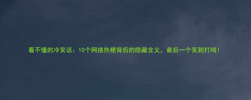 看不懂的冷笑话:10个网络热梗背后的隐藏含义,最后一个笑到打鸣!