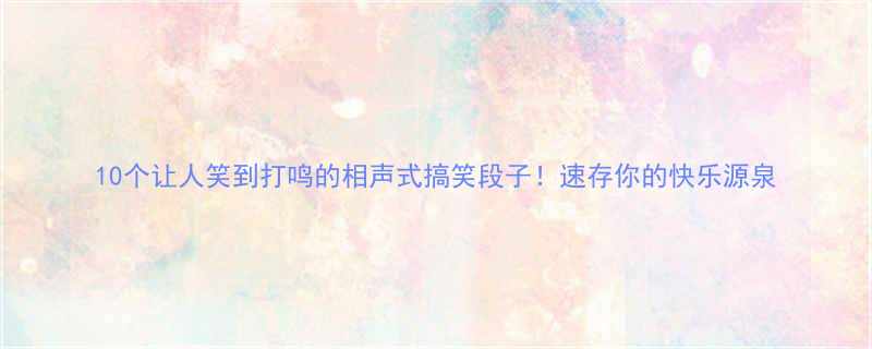 姐妹们!今天要和大家分享一期专门治"笑点梗"的相声段子合集!最近刷到好多宝子吐槽"当代相声太正经了",所以本编连夜翻遍老相声大会的录像带+网络爆梗库,整理出这10个自带BGM的爆笑段子,保证让你刷完立刻成为社交场合的段子王!快收藏这篇《相声式搞笑段子生存指南》吧~