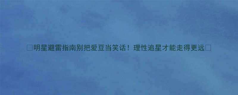 🔥【明星避雷指南】别把爱豆当笑话!理性追星才能走得更远💫