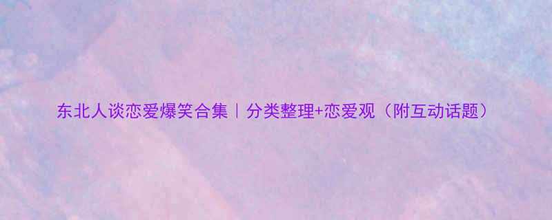 东北人谈恋爱爆笑合集|分类整理+恋爱观(附互动话题)